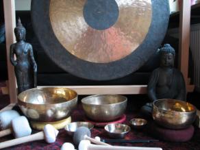 ...wird mit Tibetischen Klangschalen durchgeführt. Die Schalen wirken auf den Organismus durch die Vibrationen und den Ton.